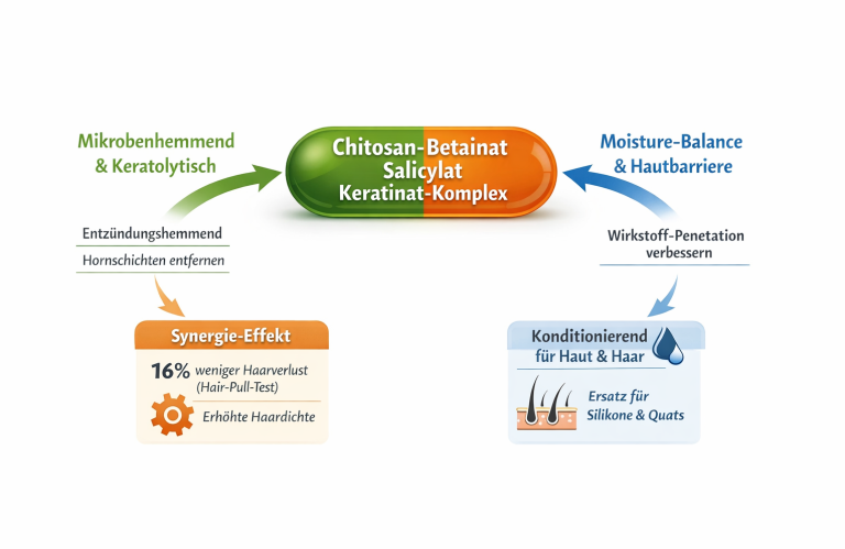 Chitosan Betainat Salicylat Keratinat wirkt mikrobenhemmend-keratolytisch …